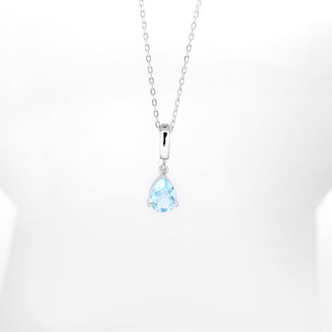 This silver necklace features a natural blue topaz and a signature oval-shaped bail. Blue topaz is the birthstone of December, known for its calming energy and clear, sky-blue color. A fresh and elegant piece for any occasion.