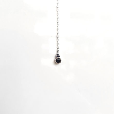 This lariat necklace features small natural blue sapphires on a sleek silver chain. Its unique drop design adds a touch of elegance and charm to any outfit.